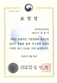 고용노동부장관 표창장